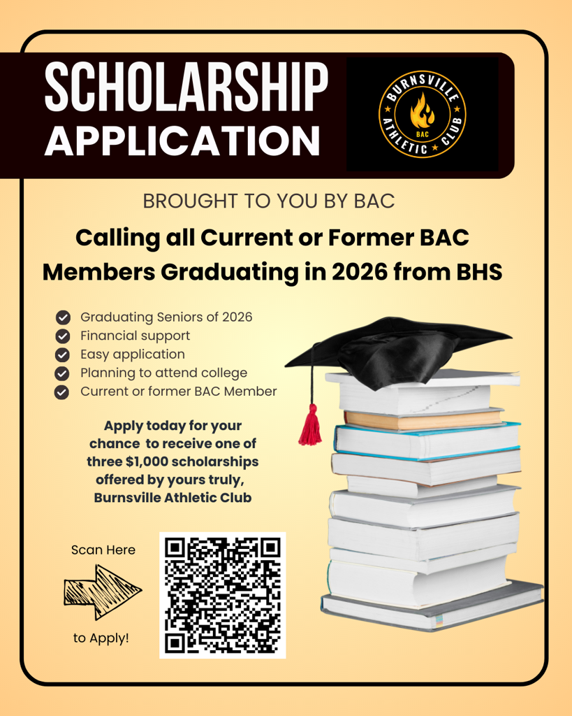 We are thrilled to announce we will be offering 3 scholarships to graduating Seniors in 2026 from BHS who are current or former members of BAC! Scan the QR code to take you directly to the application.
